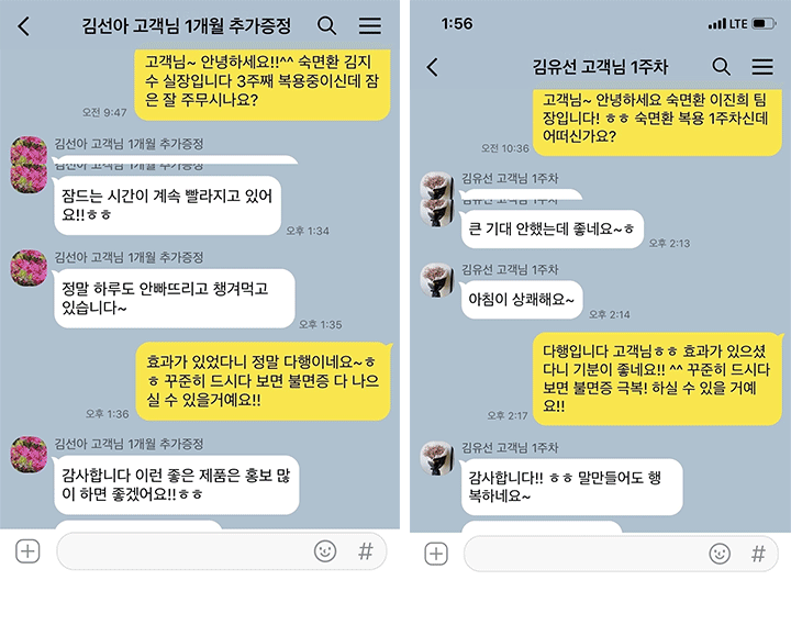 | Q3. 얼마나 빨리 효과를 느낄 수 있나요? | 사람마다 차이가 있지만, 대체로 몇 회 복용 후 잠들기 더 수월해졌다는 후기가 있습니다. 지속적인 복용과 함께 숙면 습관(수면 환경, 규칙적인 시간 등)을 병행하면 효과가 더 좋아질 수 있습니다. |
