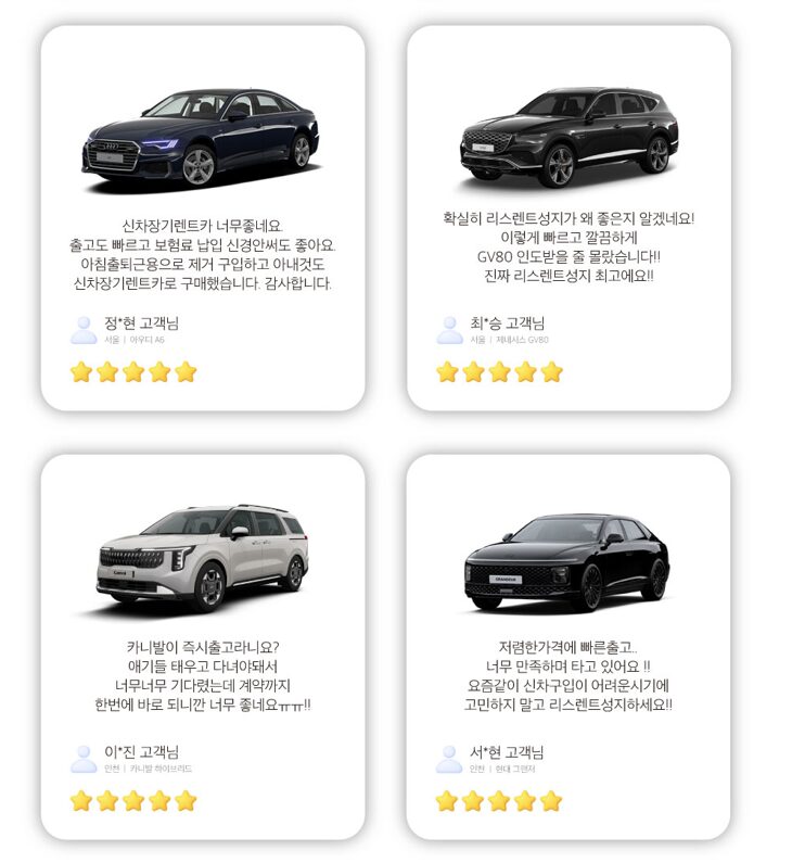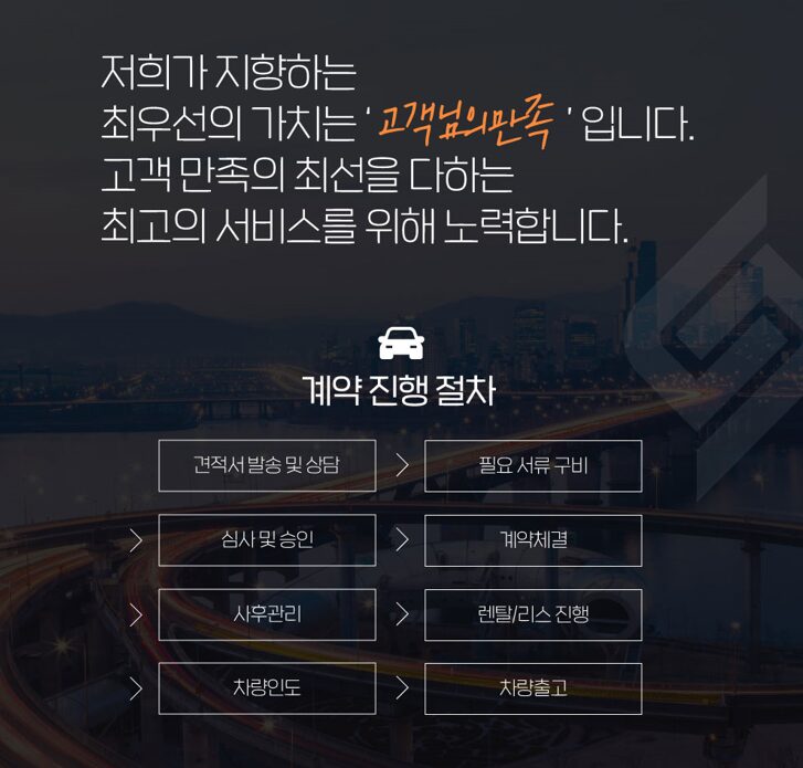계약 이후 차량 유지 및 세금/보험 처리, 차량 상태 점검 등까지 관리하며, 재계약 가능성이 높은 고객 중심 서비스 제공